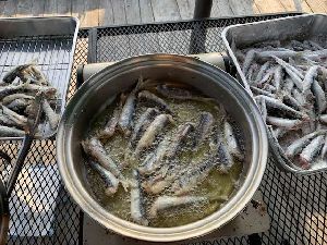 筏で釣りをしたり、鳴門の産物収穫体験を行い調理をしたりする。