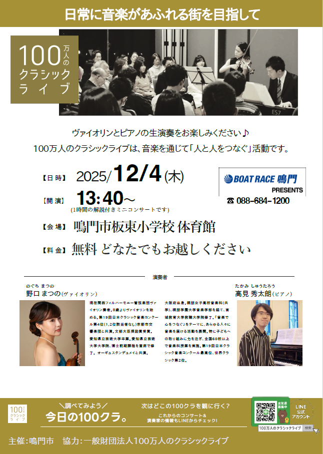 ![]() | 2025年12月04日(木) | 【12月4日(木)開催】 100万人のクラシックライブ |