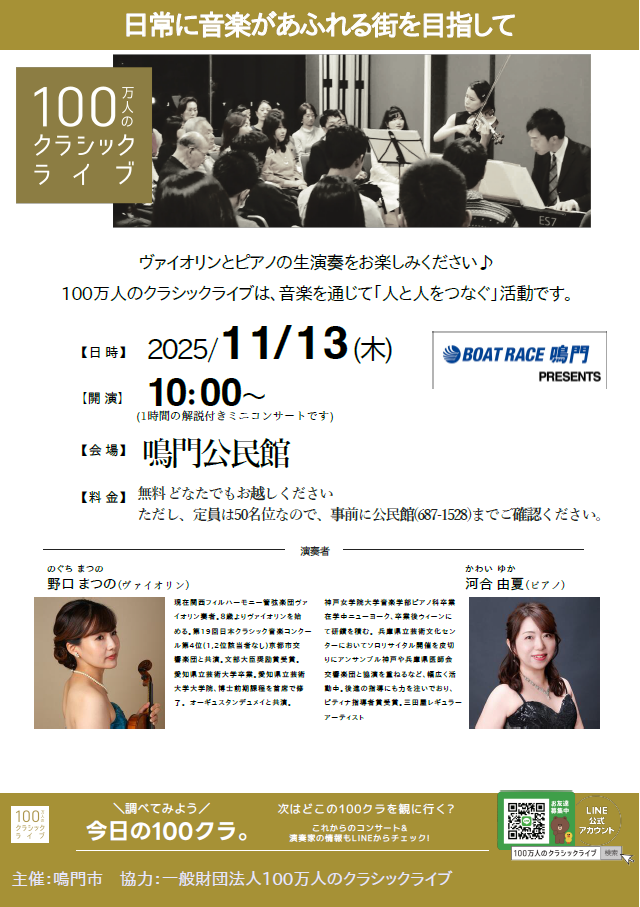 ![]() | 2025年11月13日(木) | 【11月13日開催】 100万人のクラシックライブ |