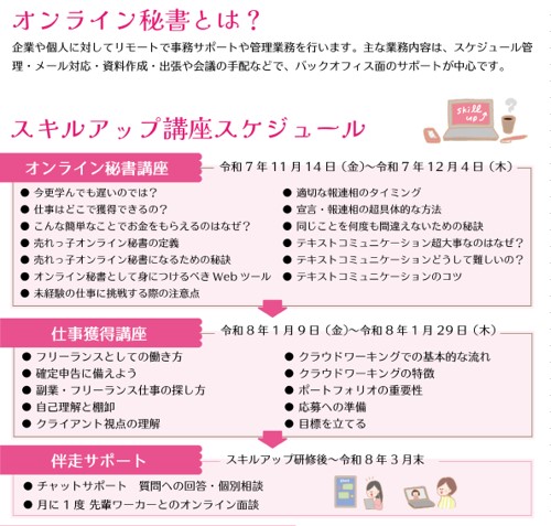 【内容】 :オンライン秘書の概要説明、育児と両立されている先輩ワーカーの体験談