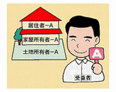 受益者はAさんとなります。- 2.Aさんの土地に、Aさんの家が建っており、その家をBさんが借りている場合(借家、アパート)