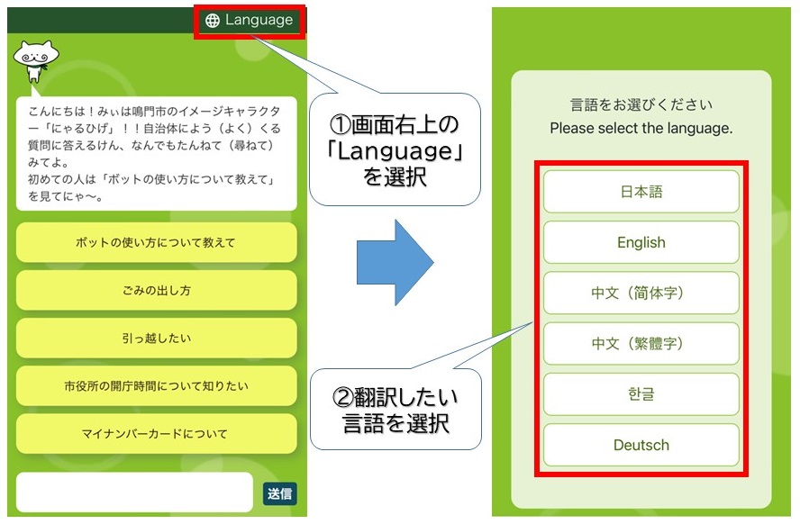 質問には鳴門市イメージキャラクター「にゃるひげ」がお答えします。