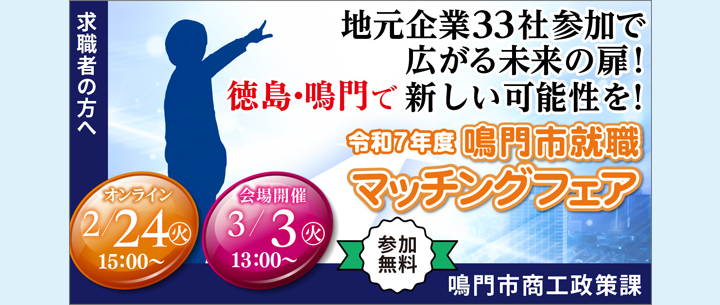 - 【学生・転職希望者、大歓迎!】『令和7年度鳴門市就職マッチングフェア』を開催!(2026年02月06日)
